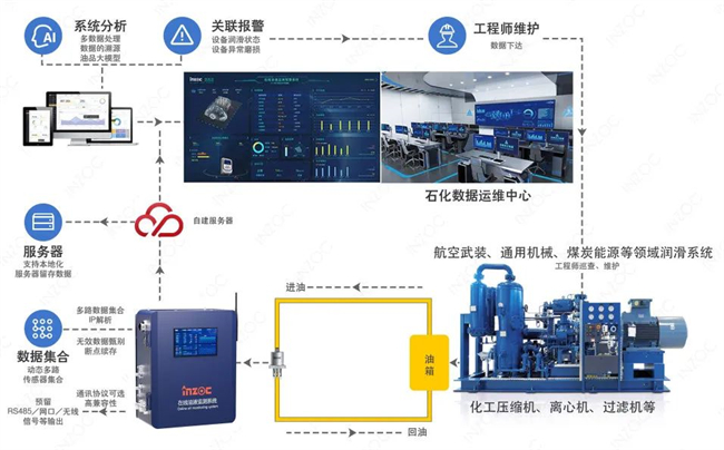 提供涵蓋設(shè)備整個(gè)潤(rùn)滑全壽命周期的監(jiān)測(cè)管理體系的解決方案——從單點(diǎn)智能感知、多點(diǎn)位分布采集或互聯(lián)互通的采集終端、集成化的在線監(jiān)測(cè)系統(tǒng)等基于數(shù)字孿生油液云平臺(tái)的解決方案。