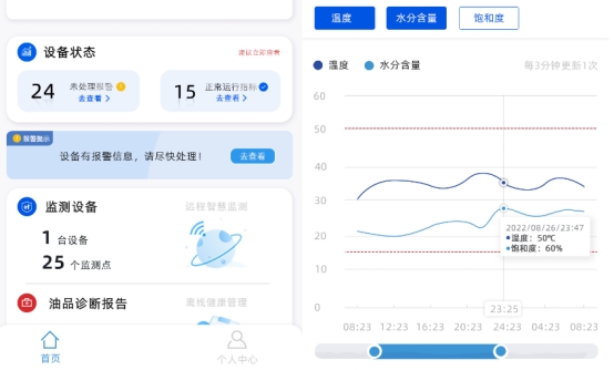 ■ 對監測到的數據進行分析,檢測油品乳化、粘度超標、齒輪異常磨損等故障,并進行分級預警。